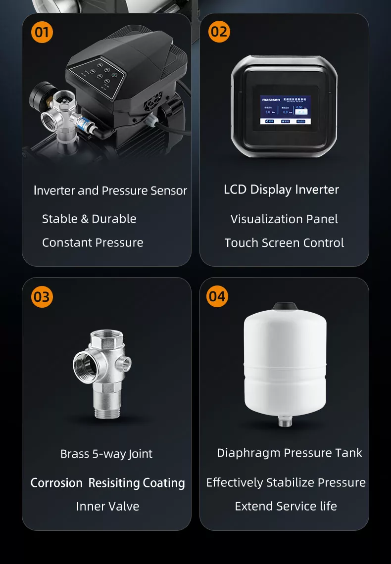 3. Veelzijdige toepassingen: Of u nu de waterdruk in gebouwen, irrigatiesystemen of industriële processen moet verhogen, deze pomp is veelzijdig genoeg om met gemak aan een breed scala aan behoeften te voldoen.